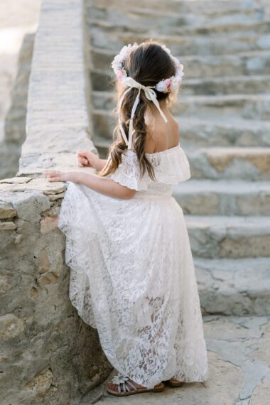 La robe longue pour enfant modèle Fidji de couleur blanche est une superbe robe pour un évènement important.
