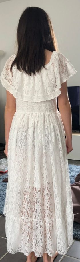 Par contre ma fille étant menue, elle ne peut pas la porter avec les épaules dénudées sinon la robe tombe !